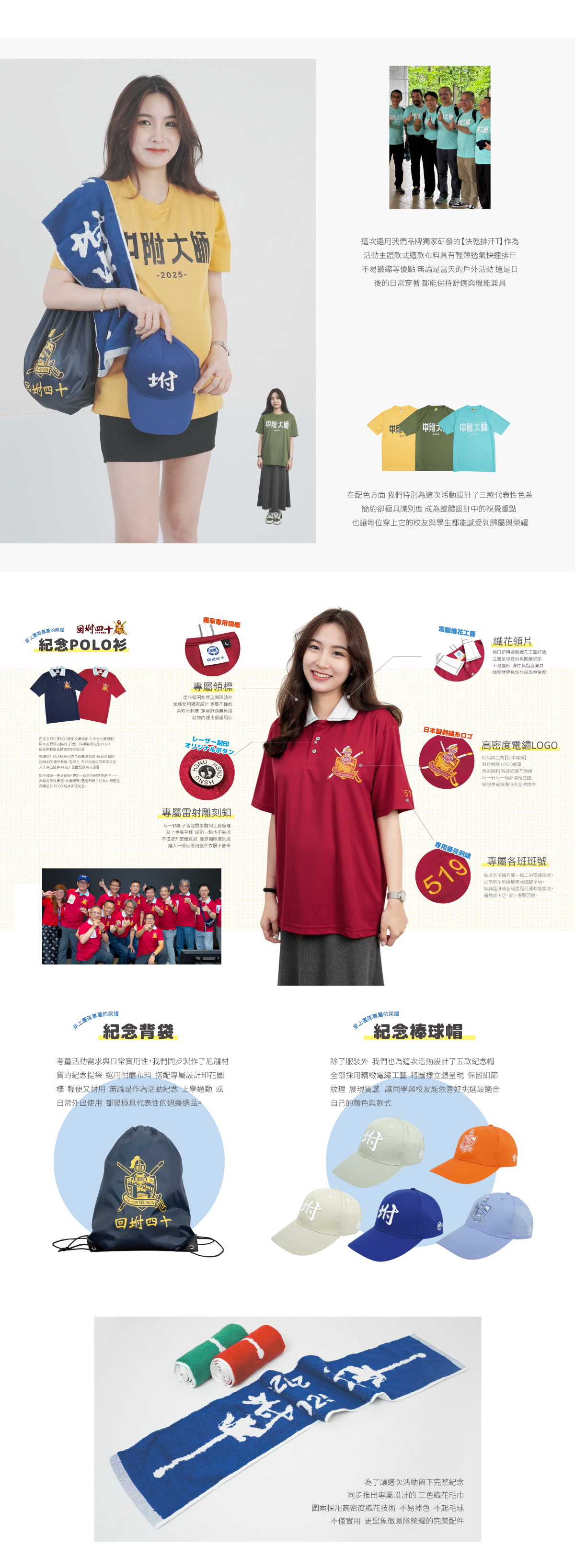 這不只是一場校慶 是一次青春的回聲 一場記憶的交會 我們很榮幸參與了「師大附中-回坿40」的活動團服製作 從零開始 陪著校友們走過設計 挑版 打樣 出貨 |