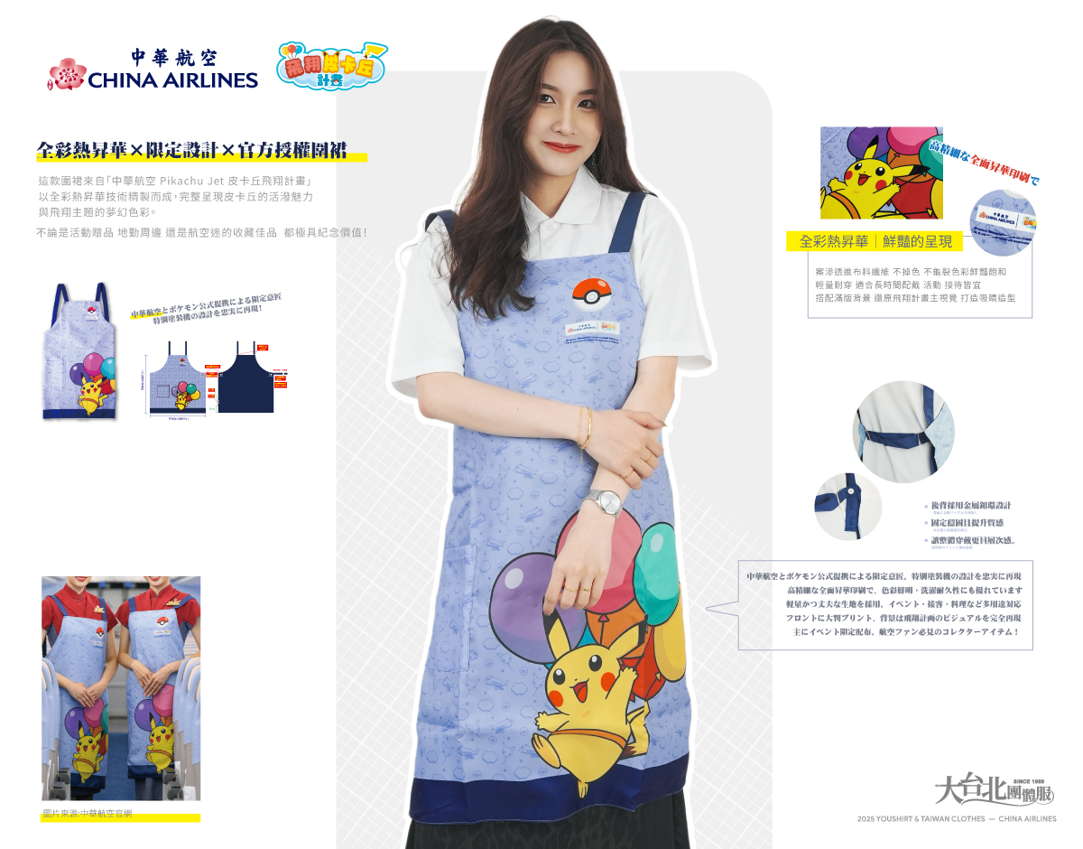 這款圍裙來自「中華航空 Pikachu Jet 皮卡丘飛翔計畫」