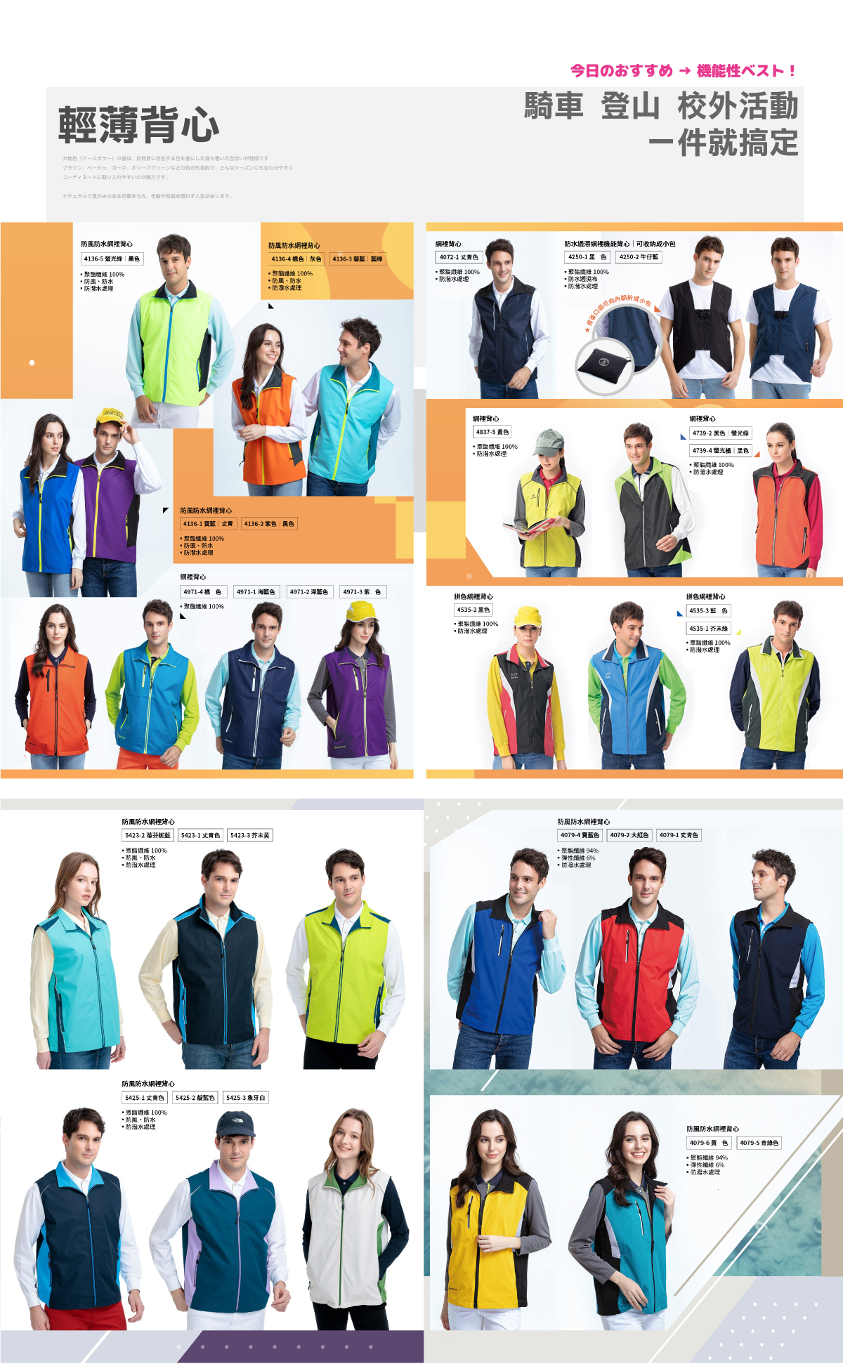 從廣告背心、活動背心到各式機能背心,提供多樣款式與印刷方式,靈活對應不同使用情境。