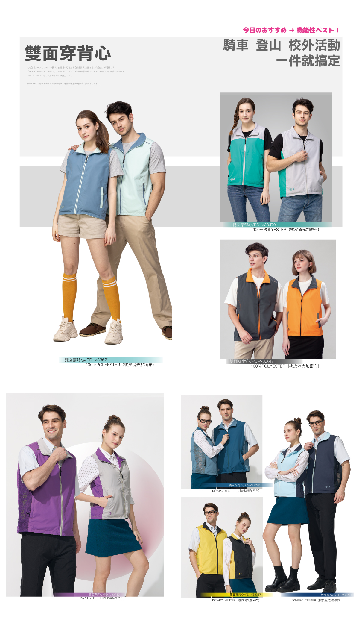 從廣告背心、活動背心到各式機能背心,提供多樣款式與印刷方式,靈活對應不同使用情境。