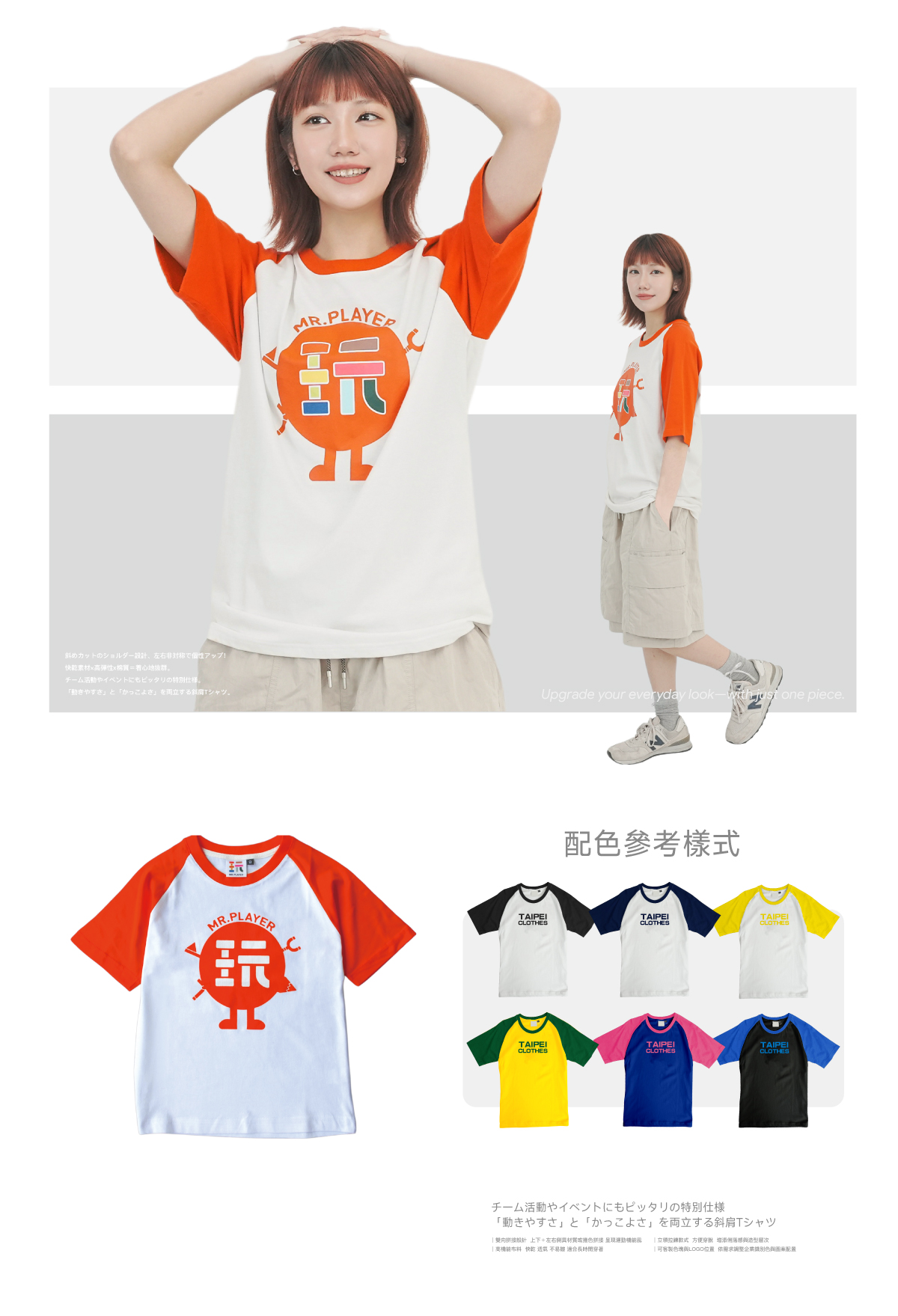 【訂製】斜肩袖圓領T